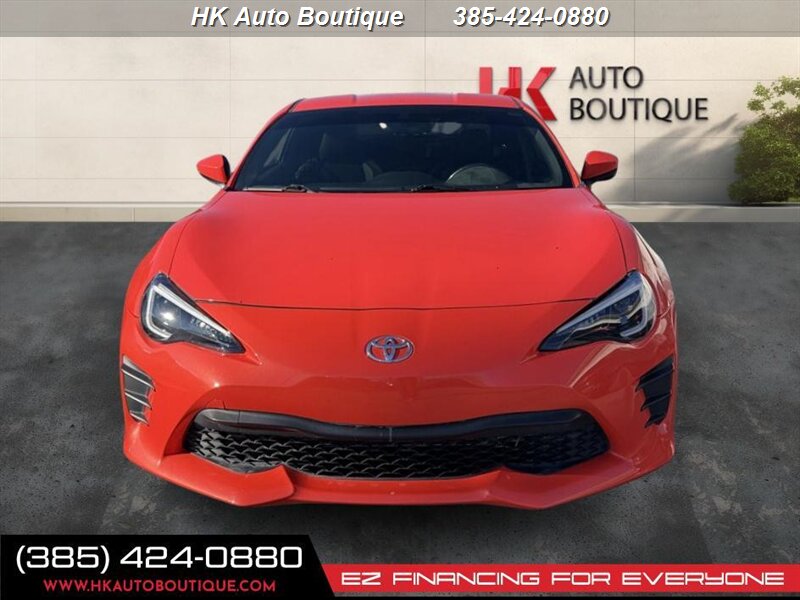 Bright Orange 2017 Toyota 86 860 Special Edition with a Black interior, powered by a 2.0L engine. Excellent overall condition, clean CARFAX, under 57,000 miles (averaging <6,000 miles/year) branded title and economical at 24 MPG city / 32 MPG highway. Factory features typically include rear-wheel drive with a sport-tuned chassis and low center of gravity, available 6-speed manual or 6-speed automatic transmission, cloth sport seats with supportive bolstering, air conditioning, power windows and locks, remote keyless entry, tilt/telescoping steering wheel, steering-wheel audio controls, Bluetooth hands-free and audio streaming, USB/AUX inputs, AM/FM audio, ABS, traction and stability control, and multiple airbags for safety.