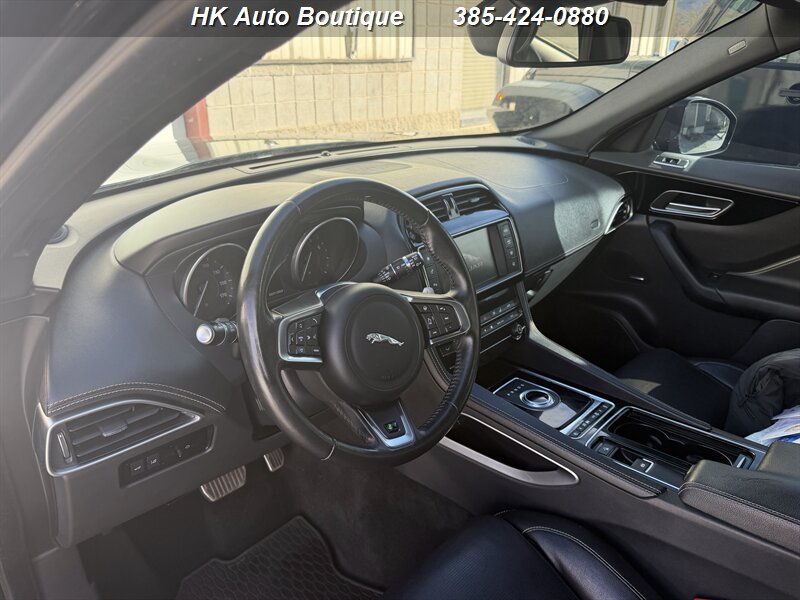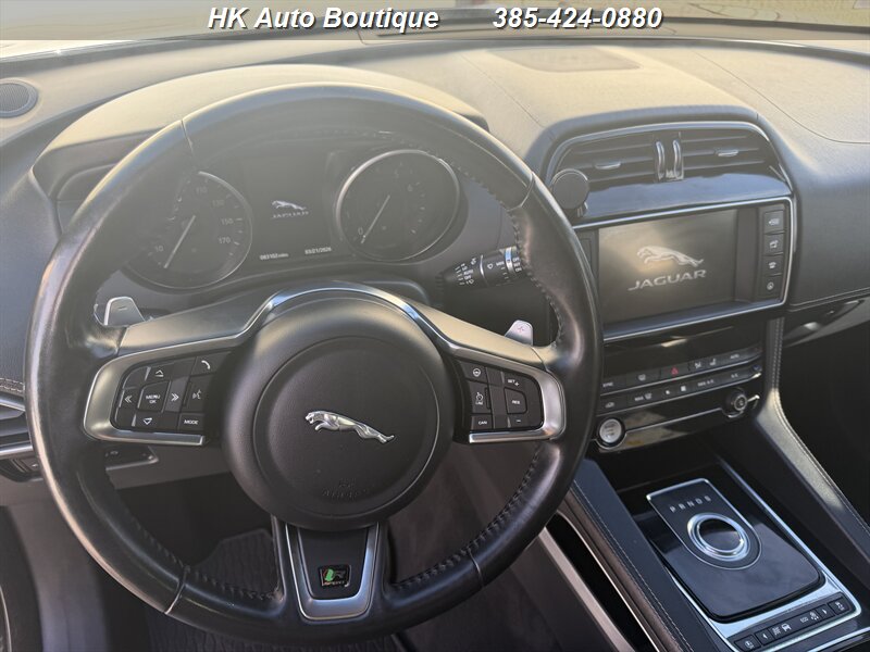 2018 Jaguar F-PACE 30t R-Sport AWD— Carpathian Grey Metallic exterior with Ebony interior and Light Oyster stitching. Powered by the Ingenium 2.0L Turbo I4 delivering 296 hp and 295 lb-ft of torque, paired to an 8-speed automatic and Jaguar’s AWD system for confident, sporty driving. Factory-equipped R-Sport features include sporty exterior R-Sport styling, LED headlights, selectable drive modes and a sport-tuned suspension, leather upholstery, dual-zone automatic climate control, power liftgate, keyless entry/start, touchscreen infotainment with Bluetooth and navigation, rearview camera and parking sensors, full suite of airbags and stability/traction control. Excellent overall condition, clean CARFAX, under 83,000 miles (averaging less than 10,000 miles/year), and fuel economy around 22 MPG city / 27 MPG highway. Ready to enjoy!